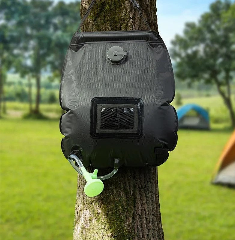 Simply fill the bag with clean water via the water inlet, place the camping shower to warm up under the sun for approximately three hours then hang it up in your desired location using the non-slip handle, secure the shower head using the velcro strap and open the water valve for the water to flow through.