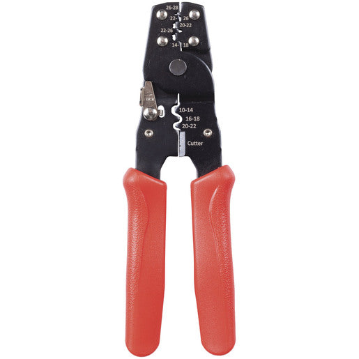 A quality Taiwanese tool at a budget price. Solid box joint and crimping dies, comfortable handles and spring-loading make this an easy crimper to use all day. It handles non-insulated lugs from 14-18 AWG and 22-26 AWG and also includes a built-in wire cutter.